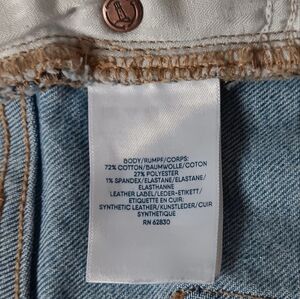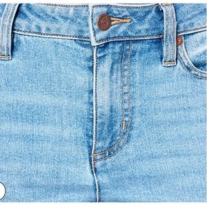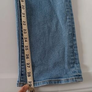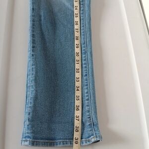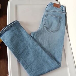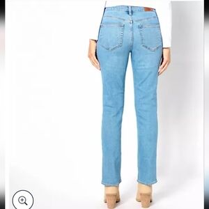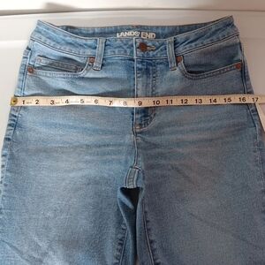 Lands'end women's recover denim pants, size 6, straight leg, high rise, light blue, 29 inseam, stretch, 72% cotton, 27% polyester, 1% spandex, 28 in waist, length of 39 in, 5 pockets, casual outfits, lightly used, excellent condition.