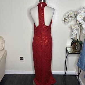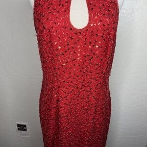 Scala Vintage 80s Red Beaded Sequin Slit Evening Dress Gown L