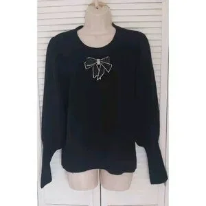 NWT CECE CREW NECK LONG PUFF SLEEVE RHINESTONE BOW KNIT SWEATER SMALL