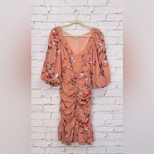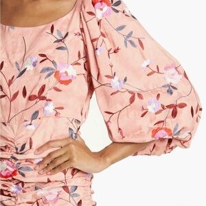 TiMo Ruched Floral Embroidered Jacquard Dress