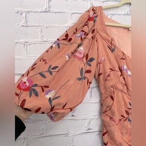 Highlight the exquisite embroidery, a scoop neckline, and long sleeves for a stand out look. Side zipper.