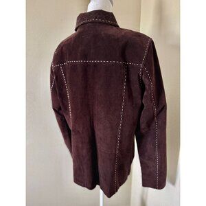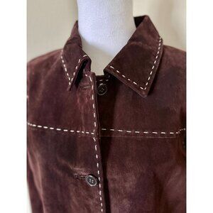 Vintage Large Brown Suede Jacket With Pockets And White Stitching Detail