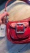 Elegant red leather bag with dual buckle pockets. Ideal for chic style. BRAND NEW