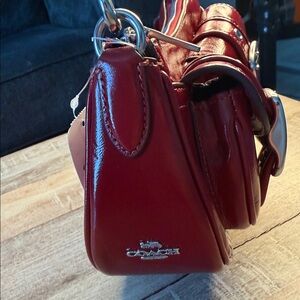 Coach Red Leather Shoulder Bag with Buckle Detail