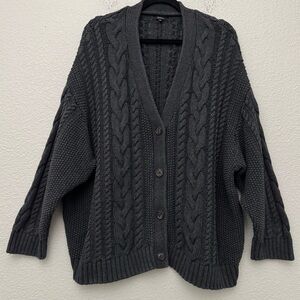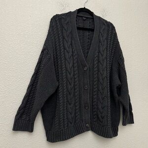 Quince 100% Organic Cotton Oversized Cable Cardigan Sweater Charcoal Gray Women's Size XL. Gently worn.