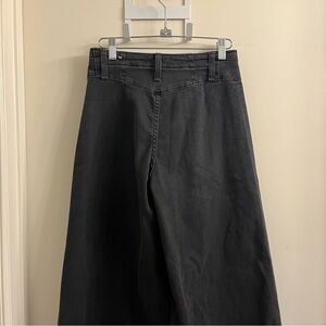 High waisted wide leg flare jeans with zip fly and button closure in a faded black color