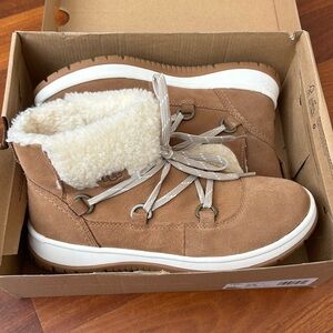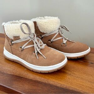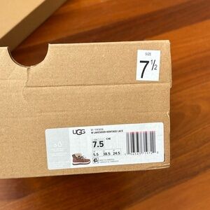 UGG Women’s Lakeside Heritage Lace-up winter boots. Chestnut color with plush cream lining. Size 7.5 Women’s. New in box. Please note the box has a small tear (see photos).