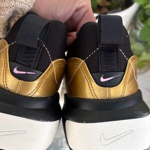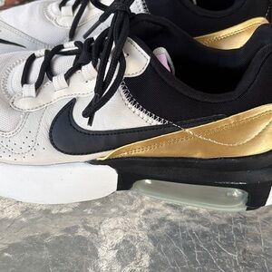 Nike athletic shoes in white with black details. Sleek design for everyday comfort.
