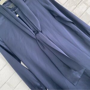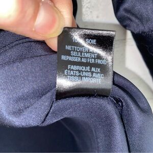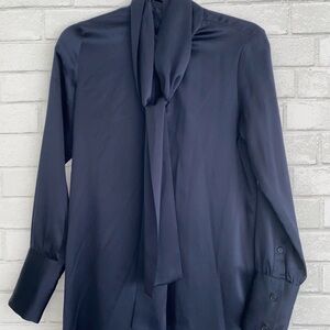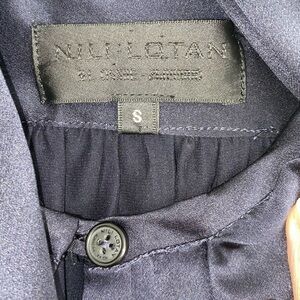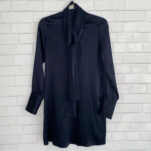 NILI LOTAN $990 Silk Navy Blue Tie Neck Mini Shirt Dress Small EUC