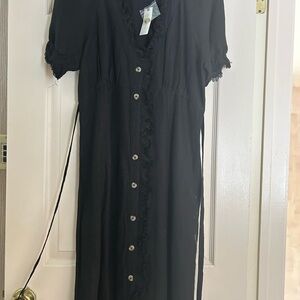 Chic black midi dress by Pilcro. Features button front and short sleeves. Perfect for versatile styling.