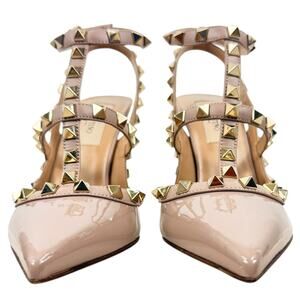 New Valentino Garavani Rockstud Caged Patent Leather Heels Beige Size 36