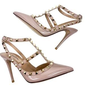 Style Tags: Valentino Rockstud sandals, Valentino caged sandals, Valentino patent leather heels, beige Rockstud sandals, Valentino Garavani shoes, designer studded sandals, luxury women’s sandals, Valentino Rockstud heels, patent leather designer shoes, Italian designer sandals, women’s Valentino heels, iconic Rockstud footwear, elegant studded sandals, Valentino size 36 shoes, high-end designer heels.