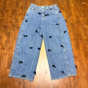 Anthropologie Pilcro The Kenna Mid-Rise Heritage Barrel Jeans Black Bows Size 29