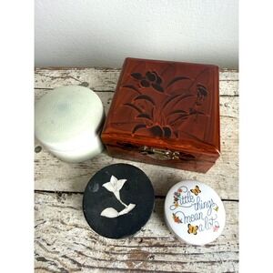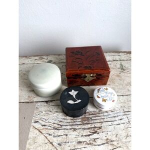 Vintage Trinket Box Set Hallmark Bone China Mother of Pearl Lacquer 4 Piece Lot