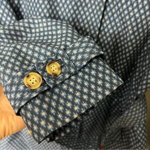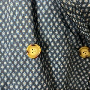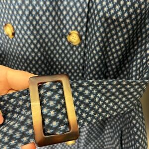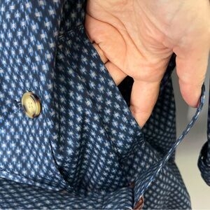 J. McLaughlin Geometric Belted Trench Coat Jacket Blue Button Front XL
