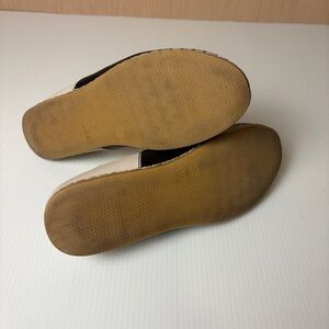 Classic, comfortable leather slip-on flats by Charix. Features a sleek black leather upper with contrasting cream leather heel and stitched sole detail. Easy-on style with cushioned leather insoles, perfect for everyday wear, work, or travel.