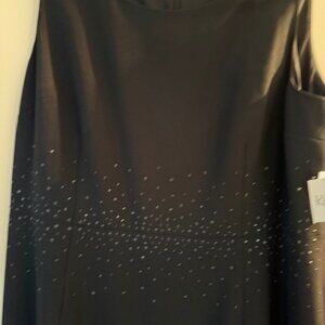 KASPER Black Dressy Dress knee length sleeveless with black beaded accents - 16P