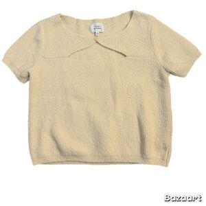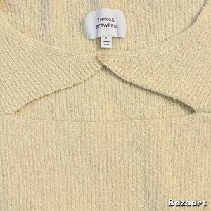 Things Between Short Sleeve Cream Sweater Top Blouse Ribbed Knit Keyhole Button