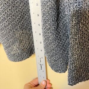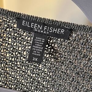 Elegant gray sweater by Eileen Fisher. Features a textured knit and long sleeves. Perfect for layering.