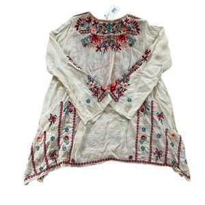 Johnny Was Cream Blouse with Red and Blue Embroidery