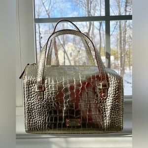 Frances Valentine Gold Crocodile-Embossed Satchel