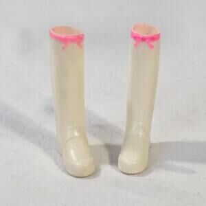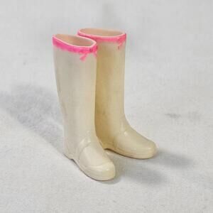 Vintage Barbie Francie #1269 Leather Limelight White Pink Trim Boots.