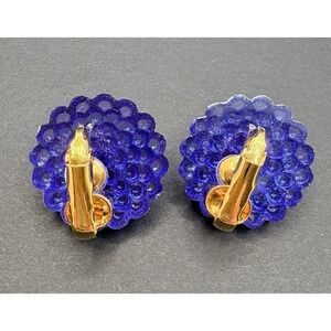 Vintage Avon Summer Berries Purple Blue Iridescent Acrylic Clip On Dome Earrings 80s Retro