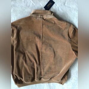 Classic zip-up barracuda/harrington jacket by Ralph Lauren. Features a ribbed wide whale corduroy and button details. Perfect for layering.
