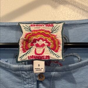 Chic blue tunic with vibrant red floral embroidery. Perfect for casual or dressy occasions.