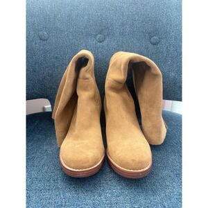 Nine West Whecee Tan Suede Tall Western Block Heel Boots Womens 7M Pull On