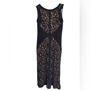 Tadashi Shoji Navy Nude Lace & Jersey Structure Gown Dress