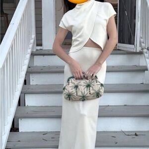 Elegant cream skirt set with unique cut-out design. Perfect for stylish occasions. Worn once for bachelorette weekend!