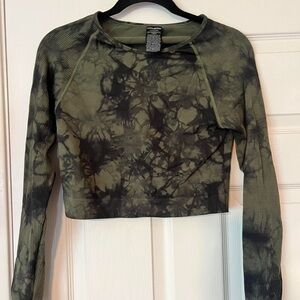 PINK Olive Tie-Dye Long Sleeve Crop Top