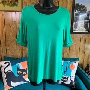 Emerald green tee with rolled sleeves. Soft and comfortable. Ideal for everyday wear.