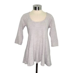 Anthropologie Deletta Gray Pathed Seams Babydoll 3/4 Sleeve Swing Tunic Top Size XS