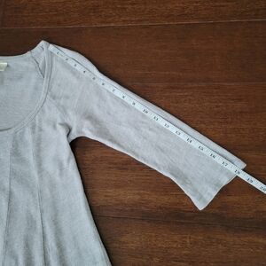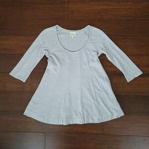 Anthropologie Deletta Gray Pathed Seams Babydoll 3/4 Sleeve Swing Top Size XS