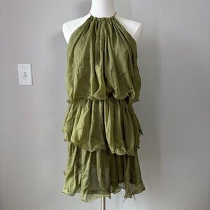 Missguided Green Tiered Ruffle Metallic Sheer Mini Dress