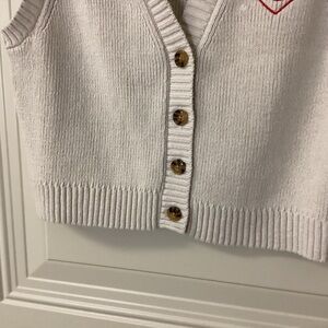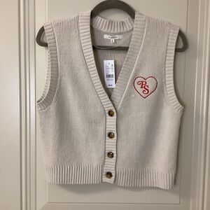 Tan cropped knit vest with PS red heart embroidery. Features button-up front and ribbed trim. BY PACSUN, size medium. Original retail $40. Unused and no flaws.