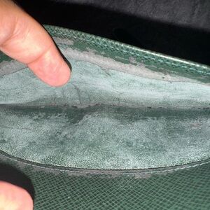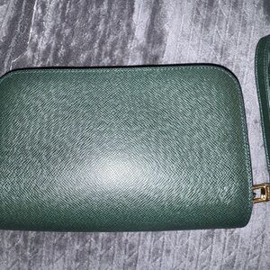 Authentic Louis Vuitton Orsay Clutch in beautiful Taiga Green leather. The exterior leather is in absolutely gorgeous, near-flawless condition — a solid 10/10. The hardware is bright with no chipping or dullness, and the zipper is smooth, clean, and works perfectly (no sticking).