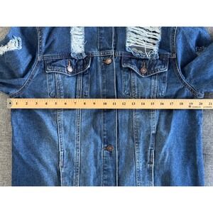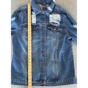 Boom Boom Jeans Distressed Embroidered Floral Denim Jacket Blue Womens Large L