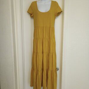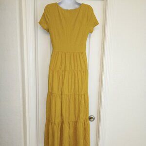 Anthropologie Maeve Gillian Tiered Maxi Dress Yellow Short Sleeve Medium | Maxi
