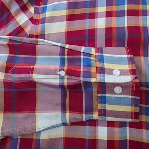 Lauren Ralph Lauren Womens Red Multi Plaid 100% Silk Button Down Shirt Large