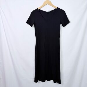 Amour Vert V-Neck Jersey Black Midi Dress Size S
