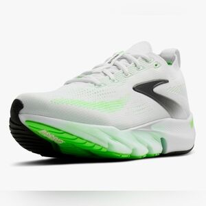 Sleek Brooks shoes with neon green accents. Perfect for running and sports.