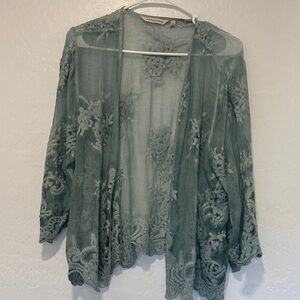Soft Surroundings Light Blue Textured Top Womens xl 100% silk cotton cardigan