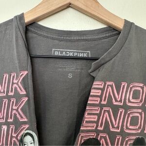 BLACKPINK KPop Small Pink Venom Group Portrait Distressed Deep V- Neck T-Shirt
