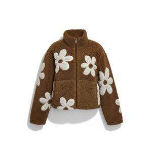Brown floral faux shearling (100% Polyester). Lining (97% Polyester, 3% Spandex). Jacket. Long sleeves. High neck.