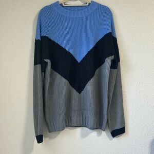 This NWOT ladies sweater in size XL features a stylish design in blue, black, and gray color combination. NWOT never worn. machine washable, non smoker and no pets.