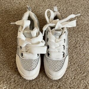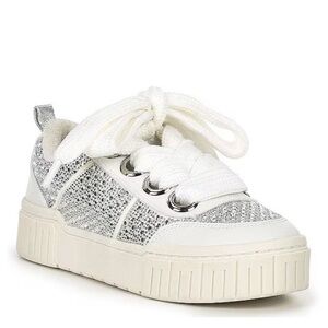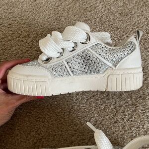 Gianni Bini after party white silver rhinestone sneaker platform over size laces