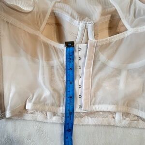 Elegant lace top with sheer design. Features high neck and open back. Perfect for layering. does not have the size